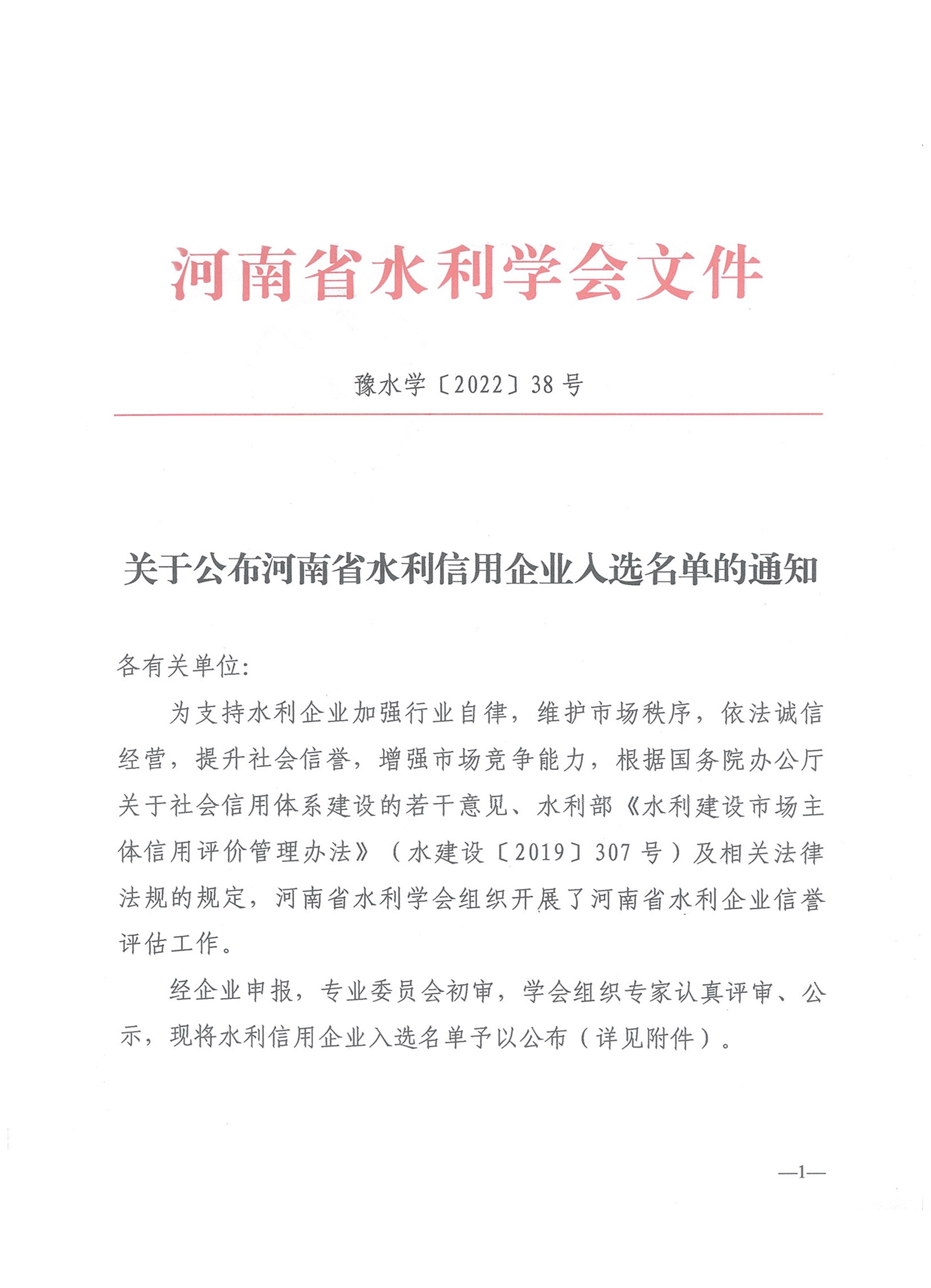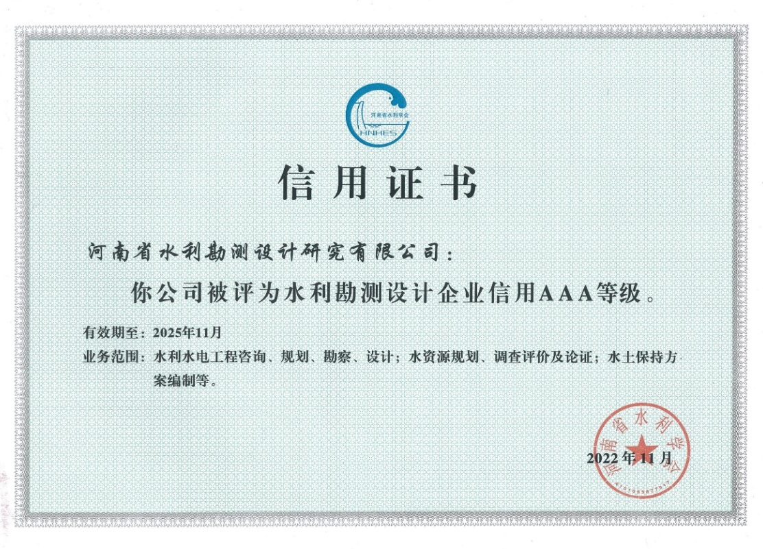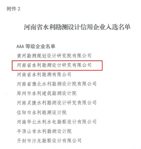 近日,河南省水利學(xué)會發(fā)布河南省水利信用企業(yè)入選名單,豫水設(shè)計公司被評為“水利勘測設(shè)計企業(yè)信用AAA等級”。